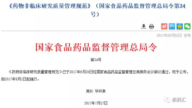 Fiftieth article This Regulation shall come into force on September 1, 2017, and the regulation on the quality control of non clinical research on Drugs issued in August 6, 2003 (No. second of the State Food and Drug Administration) shall be abolished at the same time.