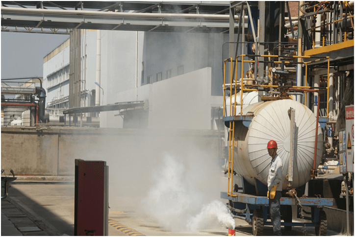 現(xiàn)場(chǎng)災(zāi)情控制組用小液氨鋼瓶控制災(zāi)情