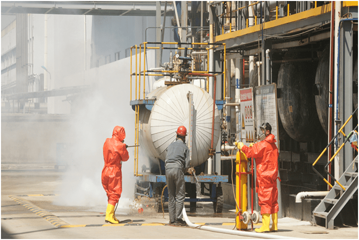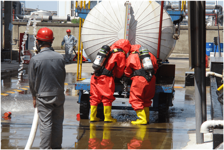9:52,張小華指示廠級(jí)環(huán)境監(jiān)測(cè)組戴全面罩入場(chǎng)對(duì)廢水取樣,對(duì)大氣檢測(cè),對(duì)更換下來的墊片進(jìn)行收集作危險(xiǎn)廢物處置;對(duì)儲(chǔ)罐區(qū)附近氣體合格后報(bào)告張小華。