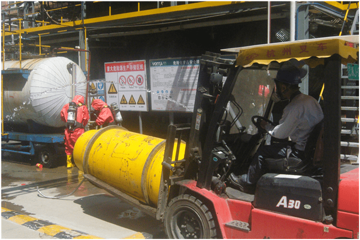 廠級(jí)物資志愿組運(yùn)來400kg液氨瓶